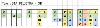 в неё букв в четырёх положениях решётки во всех клетках поля будет